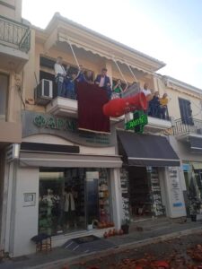 «Τα μπαλκόνια» πάντως που έδωσαν το σύνθημα και συγκέντρωσαν τον περισσότερο κόσμο, τις ευχές, «τα βλέμματα» και τα πειράγματα των Πρεβεζάνων ήταν δύο. Από την μία πάνω από το κατάστημα του κ. Τζάμου δίπλα στο Ρολόι ο Δήμαρχος, η Πρόεδρος των εμπορικών καταστημάτων του Ιστορικού Κέντρου και ο Πρόεδρος του Επιμελητηρίου Πρέβεζας και από την άλλη πάνω από το Φαρμακείο του κ. Σολδάτου ο γνωστός και έμπειρος Νομικός κ. Γιάπρος, ο πρώην Πρόεδρος του Δημοτικού Συμβουλίου κ. Καραμανίδης , ο Πρόεδρος των καταστημάτων εστίασης και συναφών επαγγελμάτων κ. Κόκκαλης και πολλοί άλλοι καλοί φίλοι.
