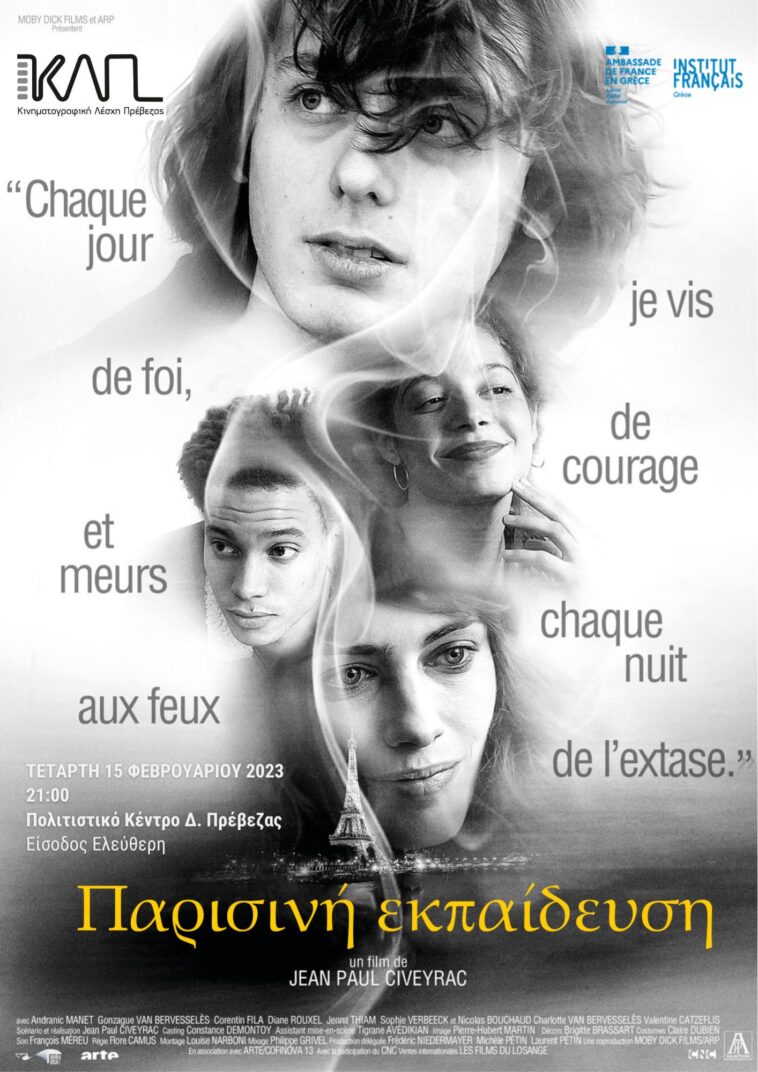 Η Κινηματογραφική Λέσχη πιστή στην προβολή ταινιών με κινηματογραφικό χαρακτήρα και αισθητική προβάλλει την Τετάρτη 15 Φεβρουαρίου 2023, 21:00 σε συνεργασία με το Γαλλικό Ινστιτούτο την «Παρισινή εκπαίδευση» του Jean Paul Civeyrac, στο Πολιτιστικό Κέντρο του Δήμου Πρέβεζας με ελεύθερη είσοδο.