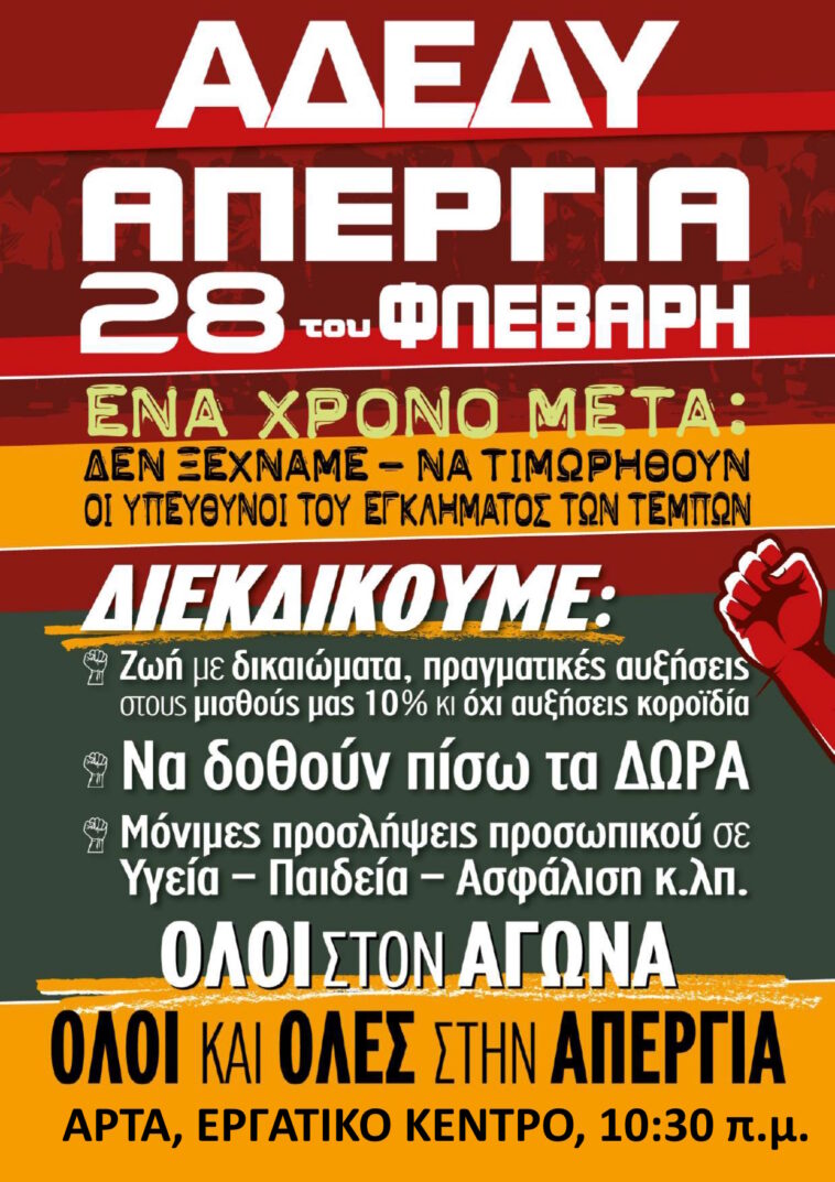 Το Νομαρχιακό Τμήμα Άρτας της Α.Δ.Ε.Δ.Υ. ενημερώνει και καλεί