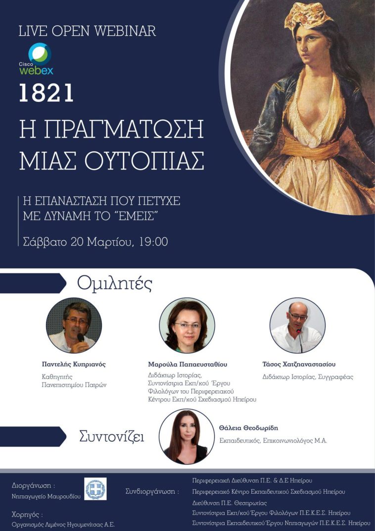 Το απόγευμα του Σαββάτου της 20ης Μαρτίου διεξήχθη με επιτυχία το OPEN WEBINAR «1821: Η πραγμάτωση μιας ουτοπίας».