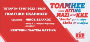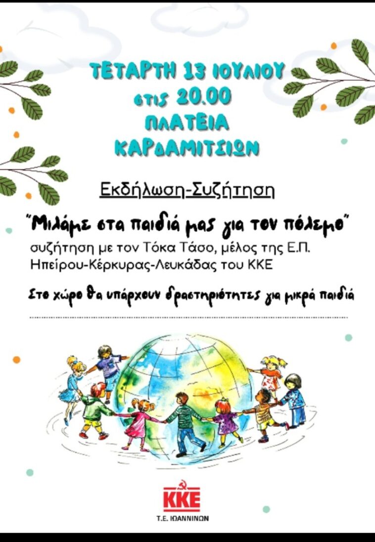 in Ιωάννινα Πολιτική δραστηριότητα της Τομεακής Οργάνωσης Ιωαννίνων του ΚΚΕ 11 Ιουλίου 2022, 13:49 See more Προηγούμενο άρθρο Η Σονάτα του Σεληνόφωτος στο Ωδείο της Νικόπολης Επόμενο άρθρο Ένας τόνος ανακυκλώσιμα ρούχα στην πρώτη εβδομάδα λειτουργίας των μωβ κάδων στον Δήμο Πάργας