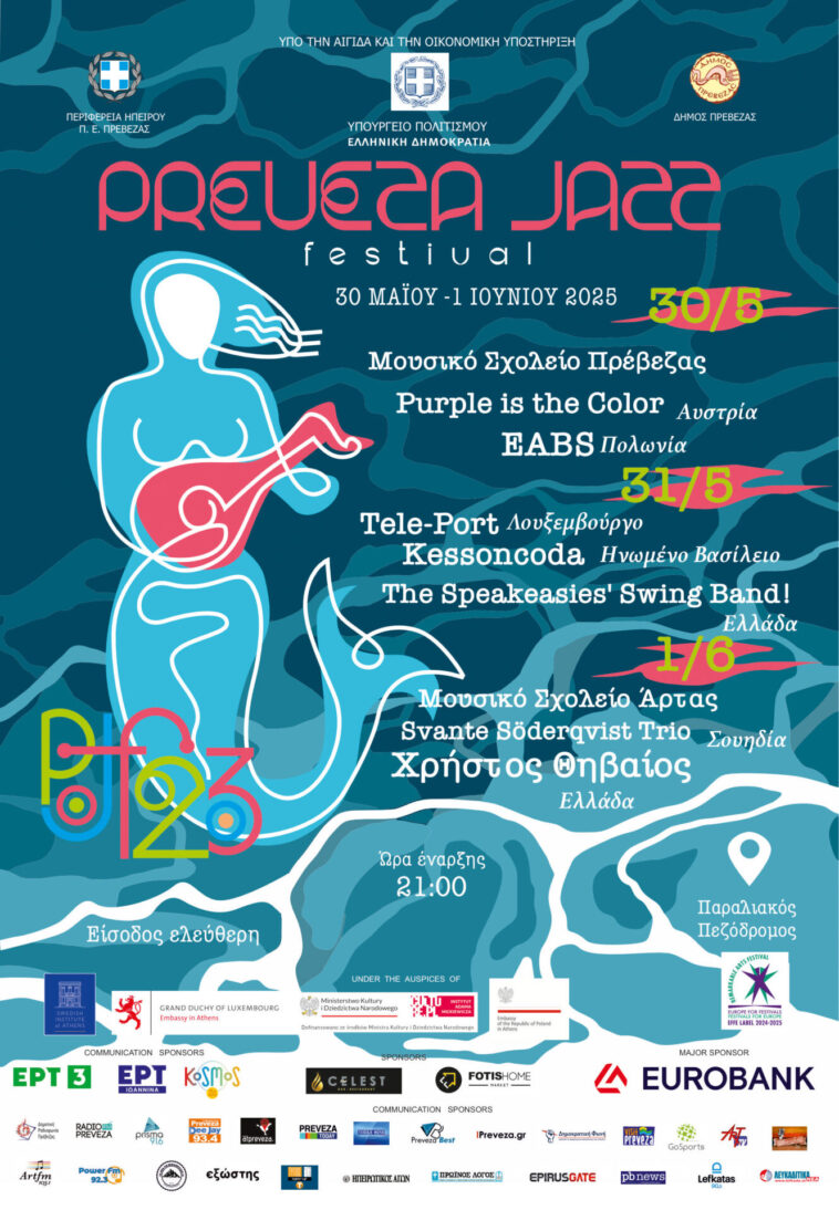 Το Preveza Jazz Festival επιστρέφει για 23η χρονιά, μετατρέποντας την παραλία της Πρέβεζας σε ένα πολυπολιτισμικό μουσικό τοπίο γεμάτο ρυθμό, μελωδία και καλλιτεχνική ενέργεια. Από τις 30 Μαΐου έως την 1η Ιουνίου 2025, η Πρέβεζα φιλοξενεί σχήματα από την Ελλάδα και το εξωτερικό, ενισχύοντας τον διεθνή χαρακτήρα και τη διαρκώς αυξανόμενη δυναμική του φεστιβάλ.