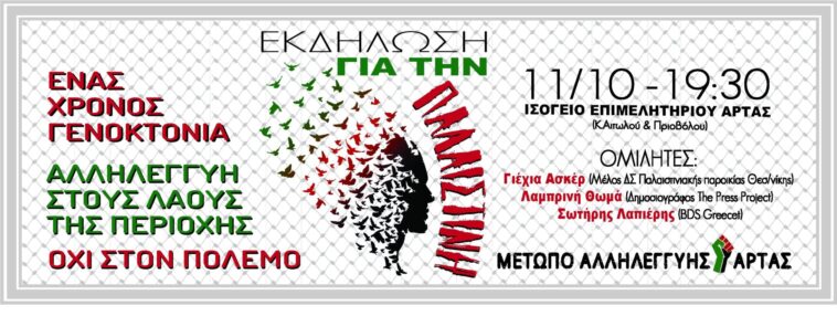 Πρόσκληση σε εκδήλωση για την Παλαιστίνη και τον πόλεμο