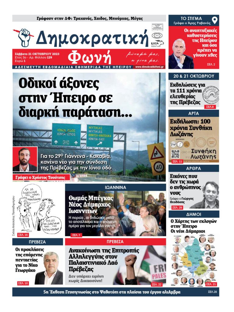 in Εφημερίδα, Ηπειρώτικος Καθρέφτης Πρωτοσέλιδο – 129ο Φύλλο – Δημοκρατική Φωνή – 21 Οκτωμβρίου 2023 20 Οκτωβρίου 2023, 19:39 See more Προηγούμενο άρθρο Ολοκληρώθηκαν οι εορταστικές εκδηλώσεις για την απελευθέρωση του Φαναρίου Επόμενο άρθρο Το 1ο Δημοτικό Σχολείο Πρέβεζας γιόρτασε την 111η επέτειο της απελευθέρωσης της πόλης μας