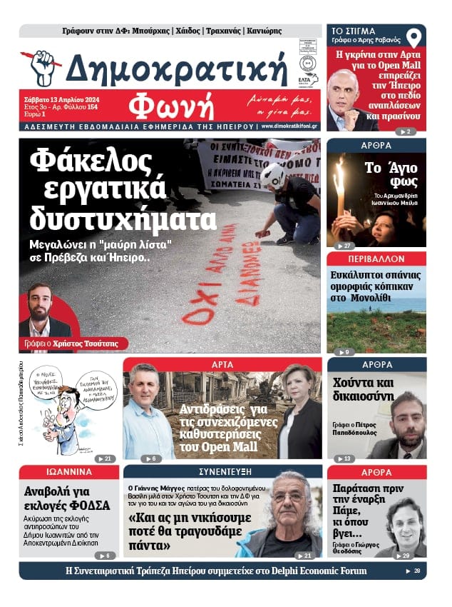 in Εφημερίδα, Ηπειρώτικος Καθρέφτης Πρωτοσέλιδο – 155ο Φύλλο – Δημοκρατική Φωνή – 21/4/2024 21 Απριλίου 2024, 13:43 See more Προηγούμενο άρθρο ΣΩΜΑΤΕΙΑ ΚΑΙ ΦΟΡΕΙΣ ΔΗΜΟΣΙΟΥ ΚΑΙ ΙΔΩΤΙΚΟΥ ΤΟΜΕΑ ΠΡΕΒΕΖΑΣ Επόμενο άρθρο Κατερίνα Ρίζου: Επίσκεψη σε Κέντρο Υγείας Φιλιππιάδας Πρεβέζης, Γενικό νοσοκομείο Άρτας