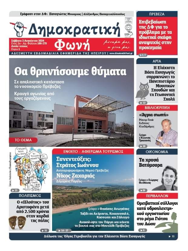Πρωτοσέλιδο – 169-170ο Φύλλο – Δημοκρατική Φωνή – 3/8/2024