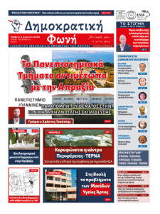 in Εφημερίδα, Ηπειρώτικος Καθρέφτης Πρωτοσέλιδο – 52ο Φύλλο – Δημοκρατική Φωνή – 2 Απριλίου 2022 4 Απριλίου 2022, 10:55 See more Προηγούμενο άρθρο ΦΠΨ Ιωαννίνων – ΕΚΠΑ: Σε «ομηρία» 132 απόφοιτοι χωρίς επαγγελματικά δικαιώματα Επόμενο άρθρο Εκδληλωση για το πανεπιστήμιο των σύγχρονων αναγκών και δυνατοτήτων της εποχής μας