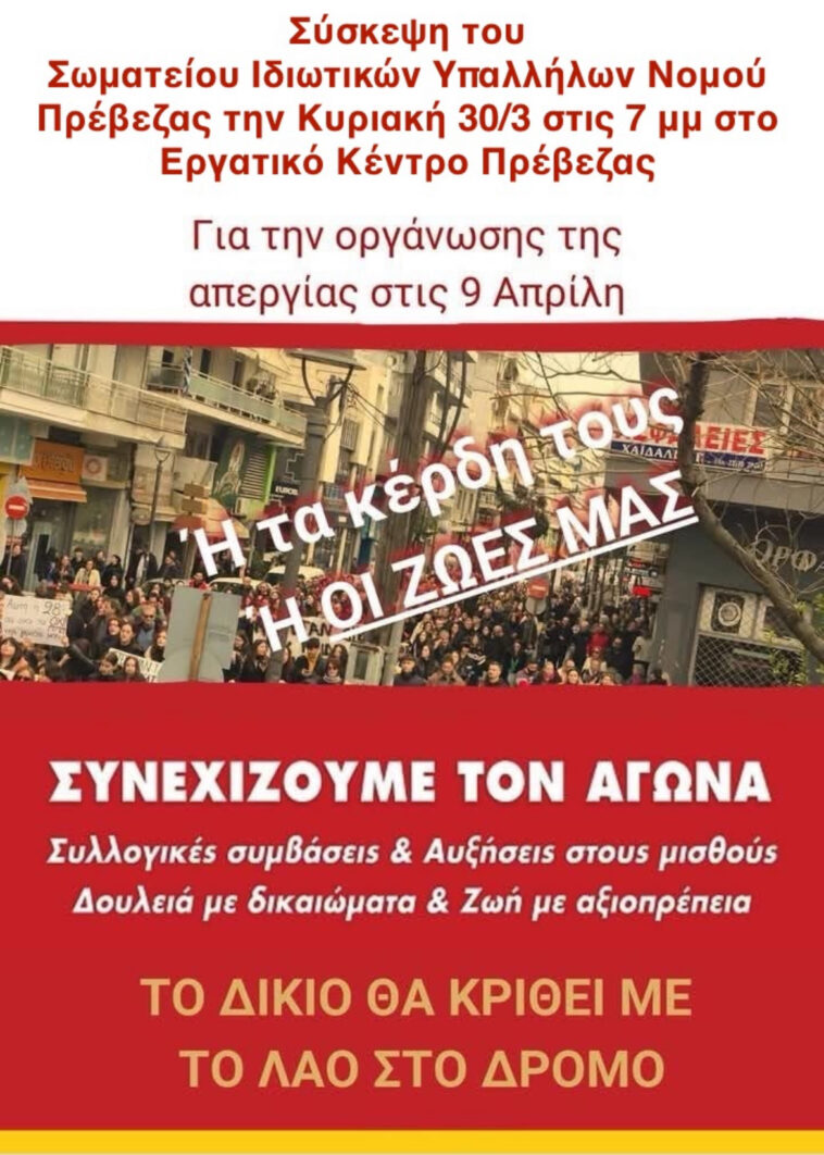 in Πρέβεζα ΣΩΜΑΤΕΙΟ ΙΔΙΩΤΙΚΩΝ ΥΠΑΛΛΗΛΩΝ Ν.ΠΡΕΒΕΖΑΣ- Ανακοίνωση απεργία 25 Μαρτίου 2025, 21:30 See more Προηγούμενο άρθρο Ανακοίνωση του Γραφείου Τύπου ΚΚΕ – Για τις εξελίξεις στην Τουρκία Επόμενο άρθρο 4ο ΓΥΜΝΑΣΙΟ ΠΡΕΒΕΖΑΣ – ΣΥΜΜΕΤΟΧΗ ΣΤΟ 3ο ΠΑΝΕΛΛΗΝΙΟ ΜΑΘΗΤΙΚΟ ΣΥΝΕΔΡΙΟ ‘ «Έλα να σου μιλήσω για τον τόπο μου» στις 29 Μαρτίου στην Πάτρα