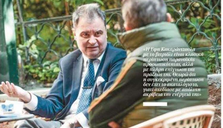 – Και ποια είναι η γνωμάτευσή σου για την περίπτωση της Εφης Κακαράντζουλα με το βιτριόλι;