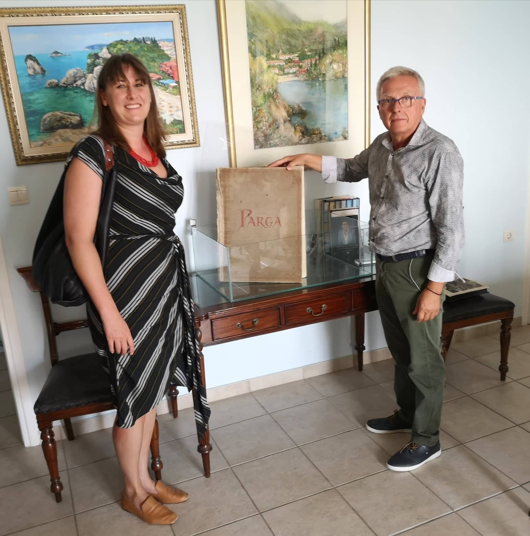 Με ιδιαίτερη χαρά η κα. Herman είχε την ευκαιρία να ξεφυλλίσει ένα από τα ελάχιστα γνήσια αντίτυπα του βιβλίου «Parga» (1907) του αρχιδούκα της Αυστρίας Λουδοβίκου Σαλβατόρ, που βρίσκεται στο Γραφείο Δημάρχου στην Πάργα. Στην συνέχεια έγινε περιήγηση στο ιστορικό κέντρο της Πάργας και μετάβαση στο Κάστρο για την παρακολούθηση της συναυλίας.