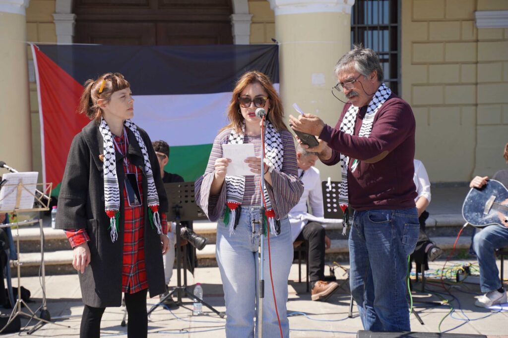 Με τις σημαίες της Παλαιστίνης να κυματίζουν και τα αντιπολεμικά τραγούδια να ηχούν στάλθηκε το μήνυμα πως ο αγώνας συνεχίζεται έως ότου ελευθερωθεί ο πολύπαθος λαός.