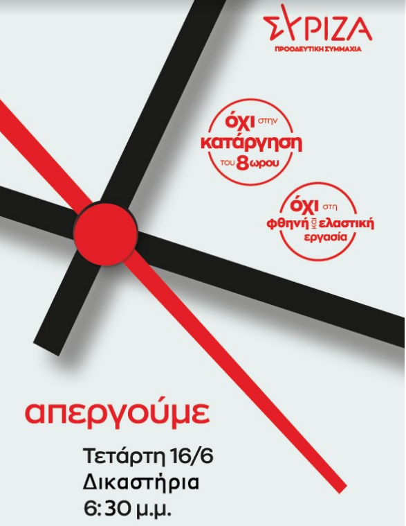 Ο ΣΥΡΙΖΑ-ΠΣ δεσμεύεται να καταργήσει το αντεργατικό έκτρωμα, όταν ο λαός του εμπιστευθεί και πάλι την κυβερνητική ευθύνη.