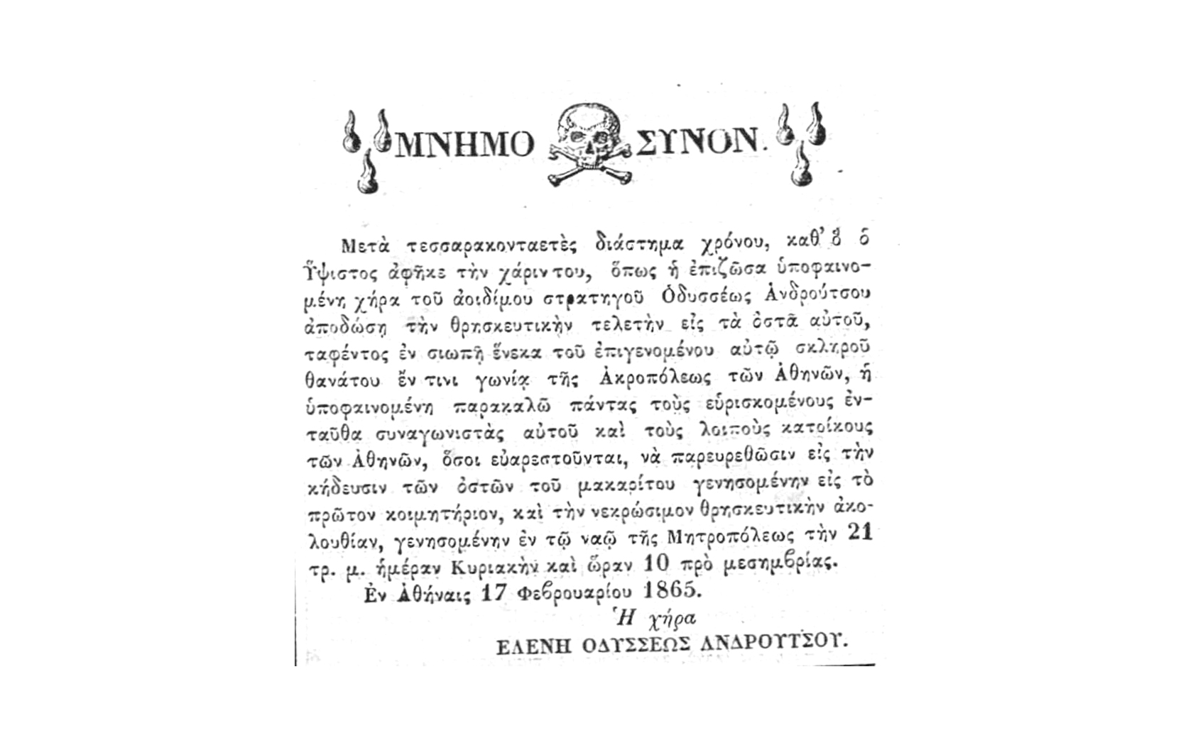 Το πρώτο επίσημο μνημόσυνο του Οδυσσέα Ανδρούτσου το 1865