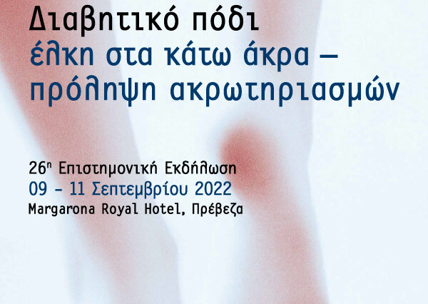 26η Επιστημονική εκδήλωση «Διαβητικό πόδι – Έλκη στα κάτω άκρα – Πρόληψη ακρωτηριασμών» 9-11 Σεπτεμβρίου 2022, Πρέβεζα | ΕΤΑΙΡΙΑ ΜΕΛΕΤΗΣ ΠΑΘΗΣΕΩΝ ΔΙΑΒΗΤΙΚΟΥ ΠΟΔΙΟΥ (ΕΜΕΔΙΠ)