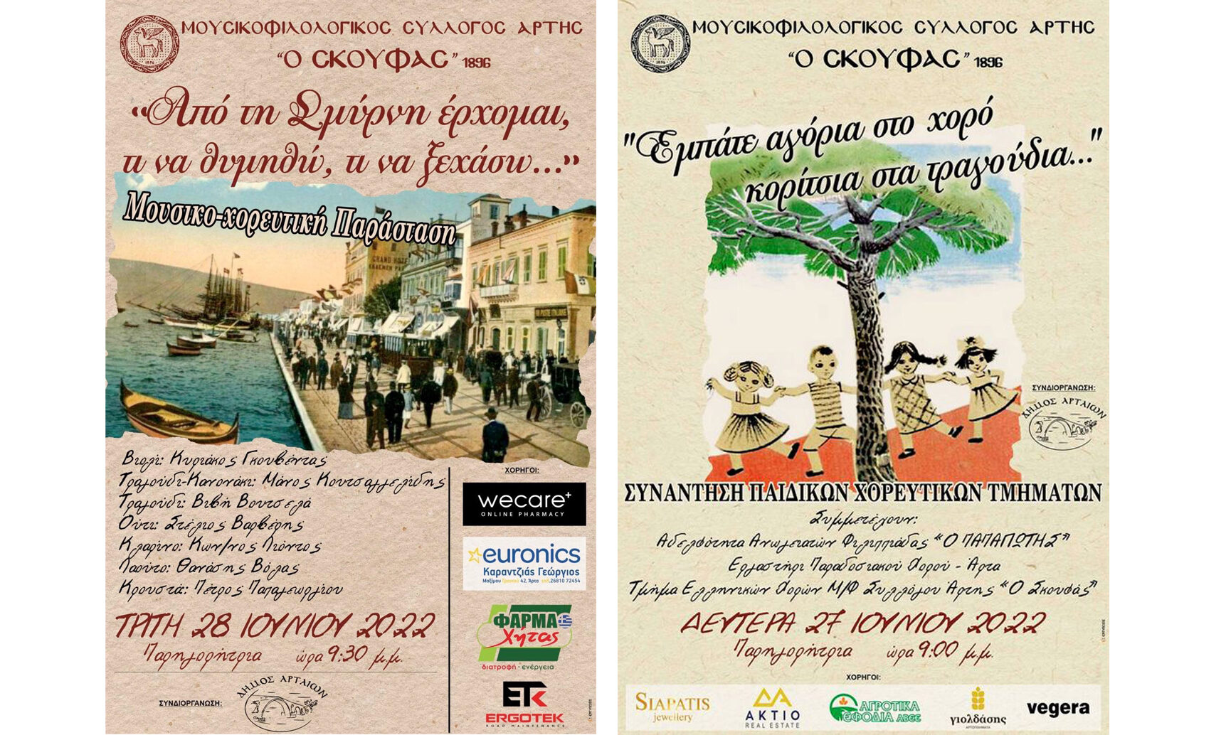 Μουσικοχορευτικές Παραστάσεις στις 27 & 28 Ιουνίου, από τον ΜΟΥΣΙΚΟΦΙΛΟΛΟΓΙΚΟ ΣΥΛΛΟΓΟ ΑΡΤΗΣ “O CΚΟΥΦΑC” – 1896