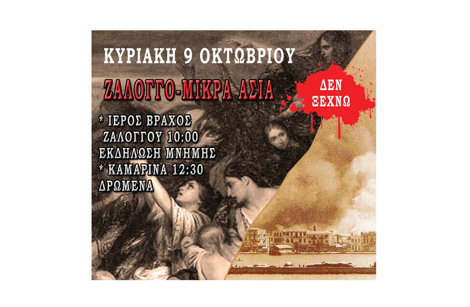 “ΖΑΛΟΓΓΟ-ΜΙΚΡΑ ΑΣΙΑ, ΔΕΝ ΞΕΧΝΩ” – Κυριακή 9 Οκτωβρίου