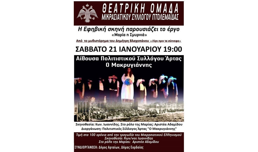 «Μαρία η Σμυρνιά» στον «Μακρυγιάννη» | Σάββατο 21 Ιανουαρίου 2023, ώρα 7.00 μ. μ.