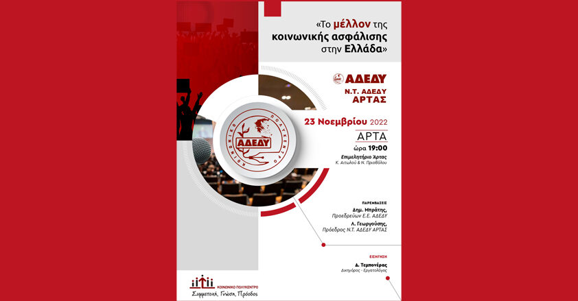 «Το μέλλον της Κοινωνικής Ασφάλισης στην Ελλάδα» | Εκδήλωση του ΝΤ Άρτας της ΑΔΕΔΥ – Τετάρτη 23 Νοεμβρίου 2022