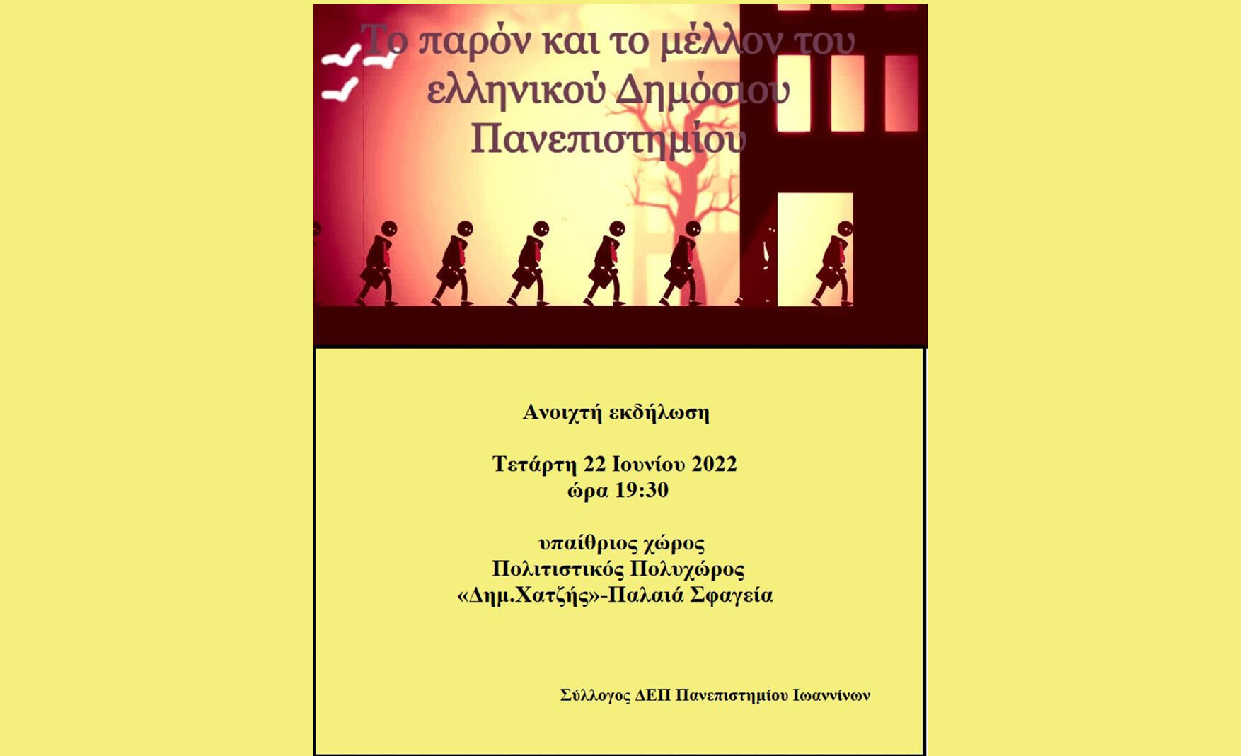 Ανοιχτή εκδήλωση ενημέρωση του Συλλόγου μελών ΔΕΠ του Πανεπιστημίου Ιωαννίνων με θέμα «Το παρόν και το μέλλον του ελληνικού Δημόσιου Πανεπιστημίου»
