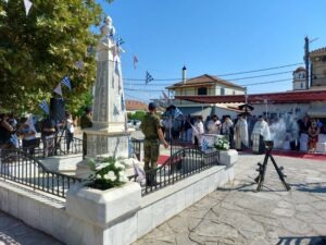 Μετά το μνημόσυνο στον Ι.Ν. Αγίων Αποστόλων Πέτρου & Παύλου, πρωτοστατούντος του Σεβασμιότατου Μητροπολίτη Άρτης κκ. Καλλίνικου, ακολούθησε η επιμνημόσυνη δέηση μπροστά από το Ηρώο.