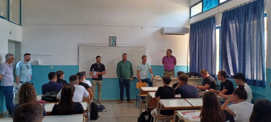 Ο υποψήφιος ευρωβουλευτής επισκέφτηκε κάθε τάξη συνοδευόμενος από τον διευθυντή της σχολής που εμφατικά υπογράμμισε ότι το ΚΚΕ είναι το μόνο πολιτικό κόμμα που ενδιαφέρθηκε μπροστά στις ευρωεκλογές να συζητήσει με τους εκπαιδευτικούς και τους σπουδαστές για τα προβλήματα της σχολής και να εκθέσει τις θέσεις του.