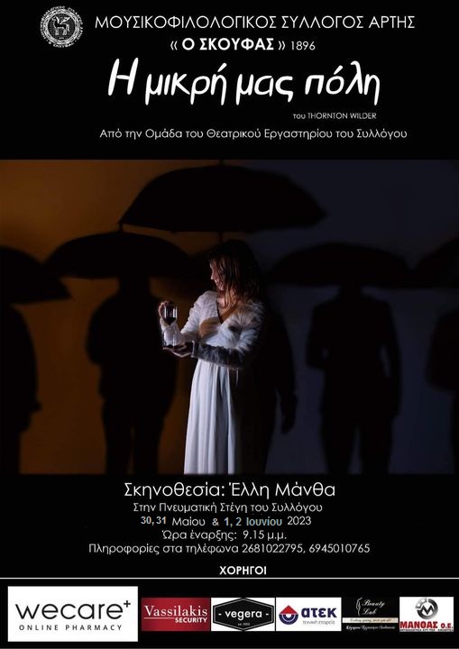 Η Ομάδα του Θεατρικού Εργαστηρίου του Μ/Φ Συλλόγου Άρτης “Ο Σκουφάς” το θεατρικό έργο “Η μικρή μας πόλη” του Θόρντον Ουάιλντερ στην Πνευματική Στέγη του Συλλόγου σε σκηνοθεσία Έλλης Μάνθα.