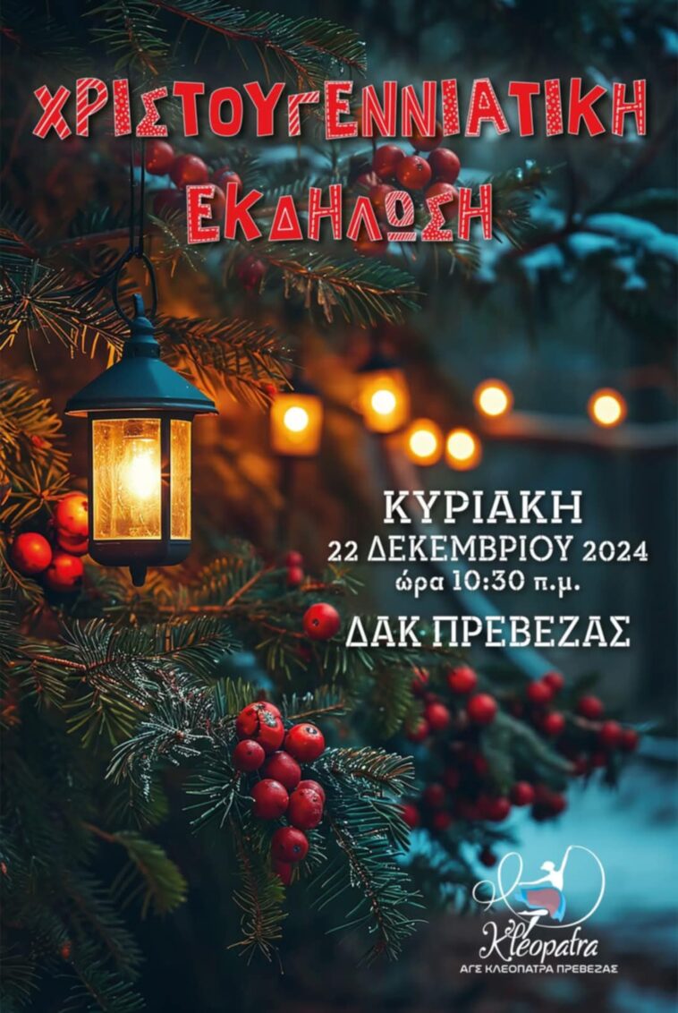 in Αθλητισμός, Πρέβεζα Την Κυριακή 22/12 η Χριστουγεννιάτικη Εκδήλωση του ΑΓΣ Κλεοπάτρα Πρέβεζας 20 Δεκεμβρίου 2024, 16:23 Την Κυριακή 22/12 και ώρα 10:30 π.μ στο ΔΑΚ Πρέβεζας θα πραγματοποιηθεί η Χριστουγεννιάτικη Εκδήλωση του ΑΓΣ Κλεοπάτρα Πρέβεζας. See more Προηγούμενο άρθρο Γραφείο Τύπου Δήμου Πρέβεζας- ανακοίνωση κακοκαιρία Επόμενο άρθρο ΕΥΧΕΣ ΑΠΟ Πρόεδρο ΕΦΦΕ Άρτας-Φιλιππίαδας