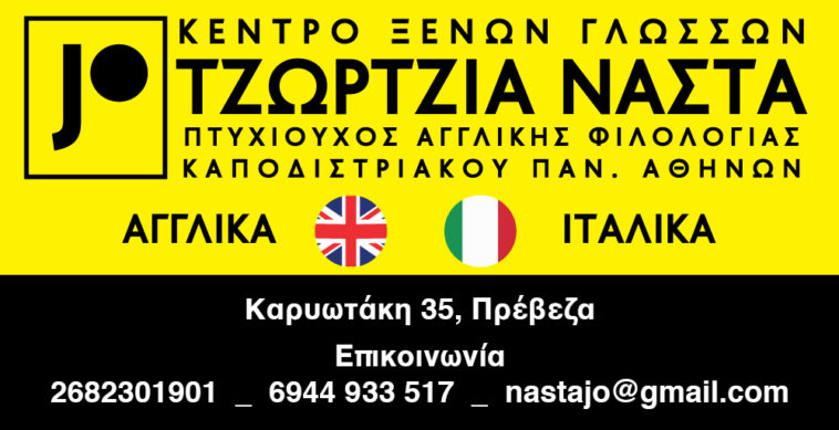 Το Κέντρο Ξένων Γλωσσών “Τζώρτζια Νάστα” αποτελεί μία σύγχρονη δομή διδασκαλίας και προώθησης της γλωσσομάθειας στην πόλη της Πρέβεζας!