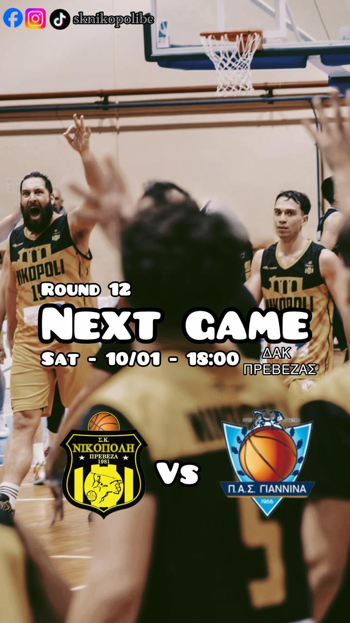 Ο Σύλλογος Καλαθοσφαίρισης Νικόπολη Πρέβεζας δίνει το δεύτερο παιχνίδι της νέας χρονιάς και καλεί τον φίλαθλο κόσμο της πόλης να βρεθεί στο πλευρό της ομάδας.